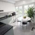 Lägenheten erbjuder gästerna ett utrustat kök med ugn och diskmaskin.